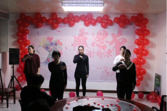 感恩的心感謝有你,讓這生命的旅程不再孤單,感恩的心感謝有你,讓所有的經(jīng)歷變得充滿意義,世間每一種情懷都需要一個好的表達(dá),而每一聲道出口感謝也并不是只有文字的簡單發(fā)聲,財務(wù)部全體用手語表演了《感恩的心》,讓我們更深層次感受愛的表達(dá)。