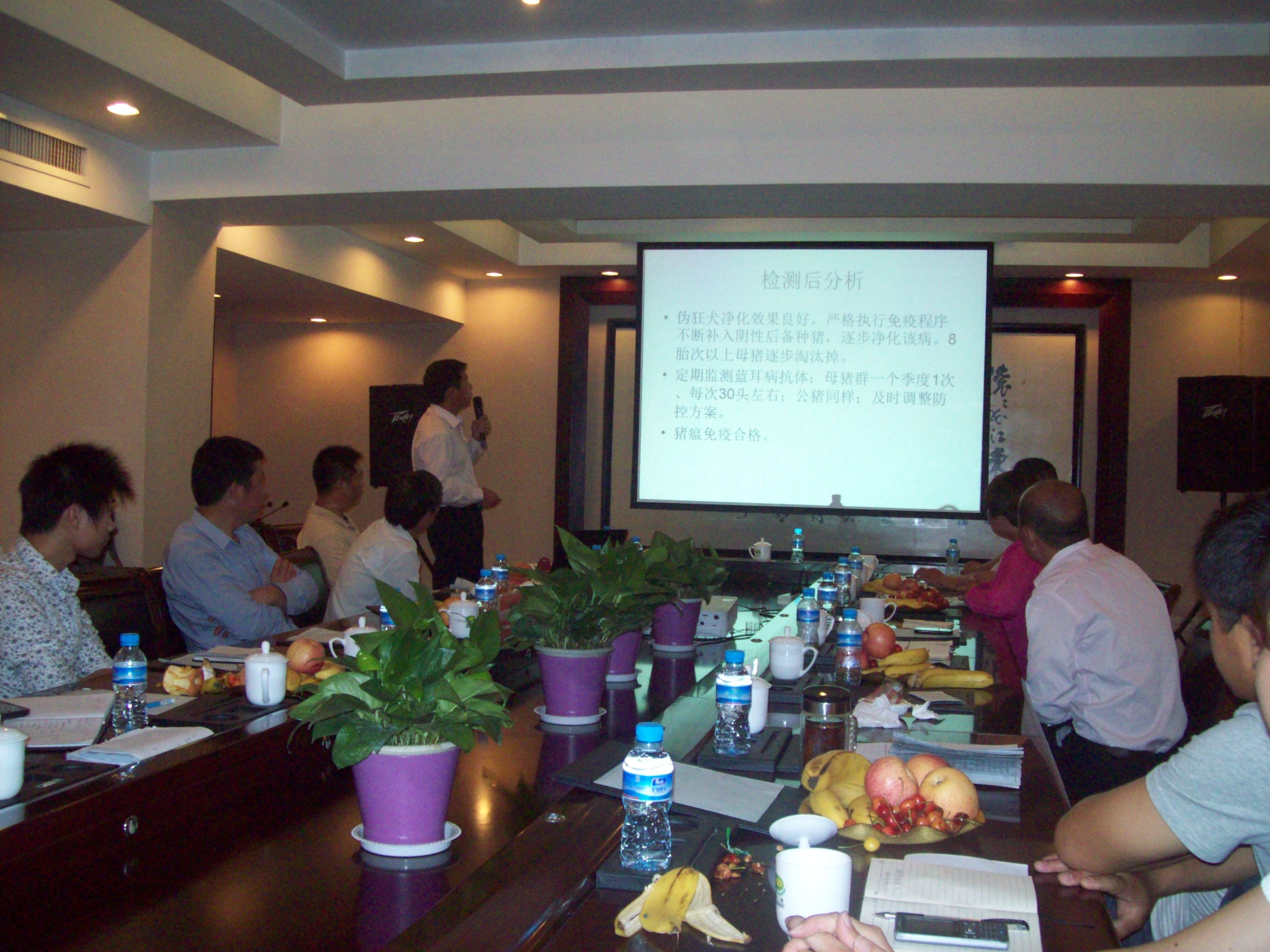 會(huì)議上各家公司分別對(duì)上半年的生產(chǎn)工作情況進(jìn)行總結(jié),以及做出下半年的工作計(jì)劃,對(duì)生產(chǎn)育種工作中,所遇到的問(wèn)題進(jìn)行了積極的交流,并總結(jié)了有效的解決法案。除了三家公司的老板和中高層管理人員,河南省農(nóng)業(yè)科學(xué)院動(dòng)物疫病研究所郭成留教授,也應(yīng)邀出席了本次會(huì)議,為三家養(yǎng)豬企業(yè)的工作作出了詳細(xì)的點(diǎn)評(píng)和指導(dǎo)建議,讓在場(chǎng)各企業(yè)高管們受益匪淺。